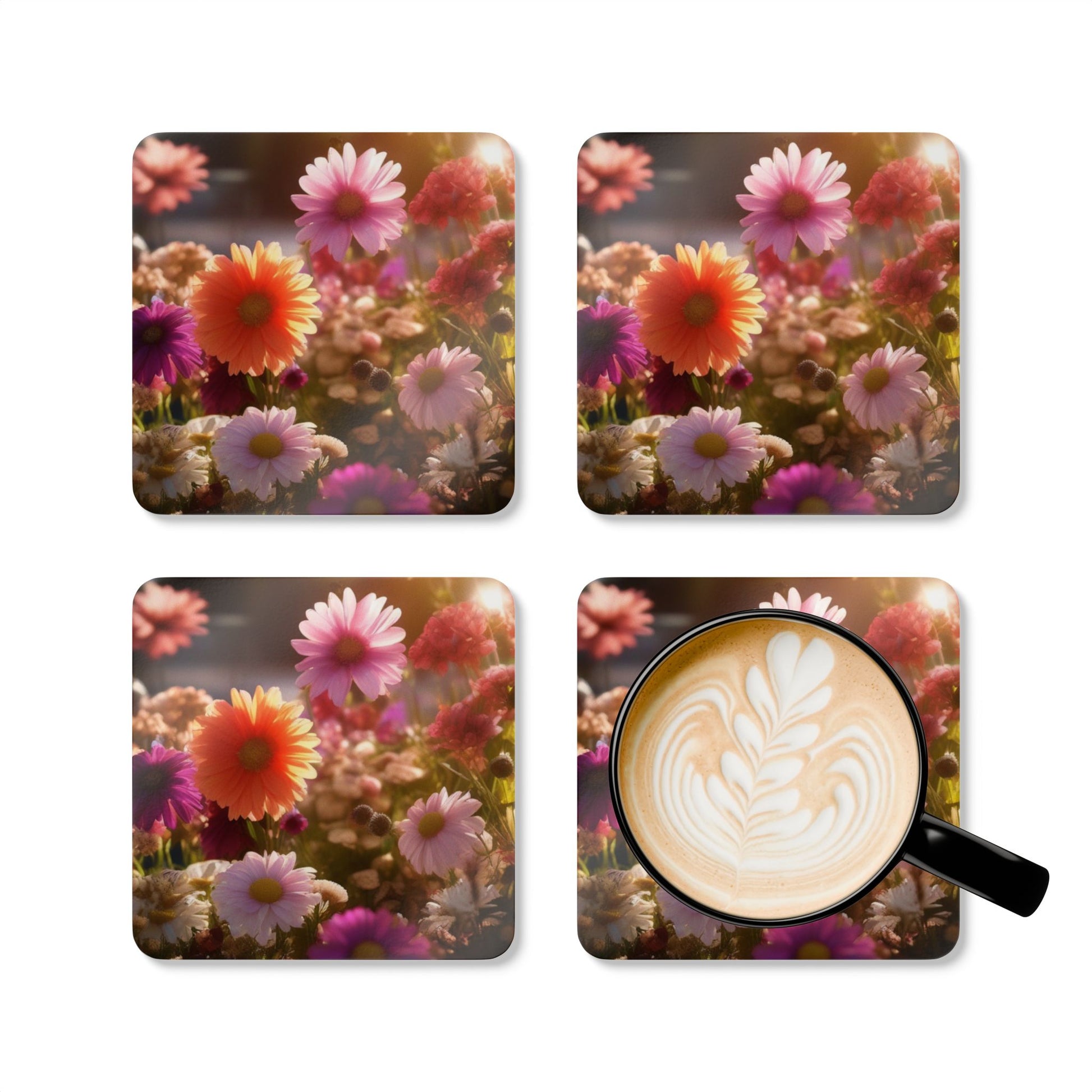 Floral Corkwood Coaster Set | Drink Coasters for Home & outdoor Decor