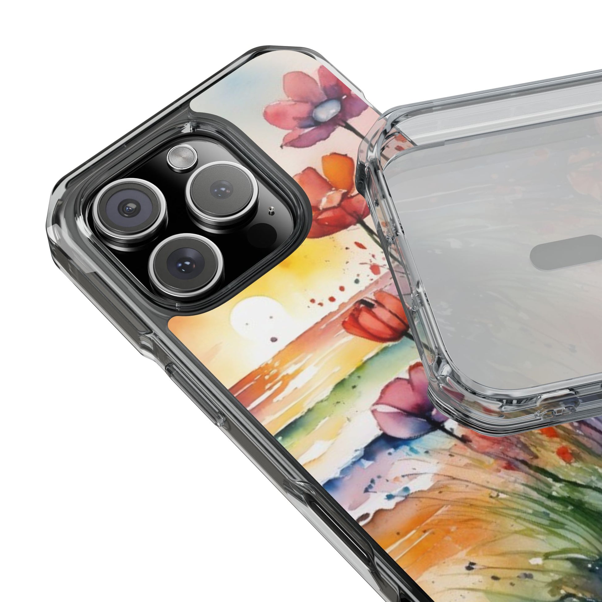 Floral Magnetic Phone Case for iPhone 14\15\16- Clear Impact Protection, Beach case, iphone 16 pro max, iPhone case
