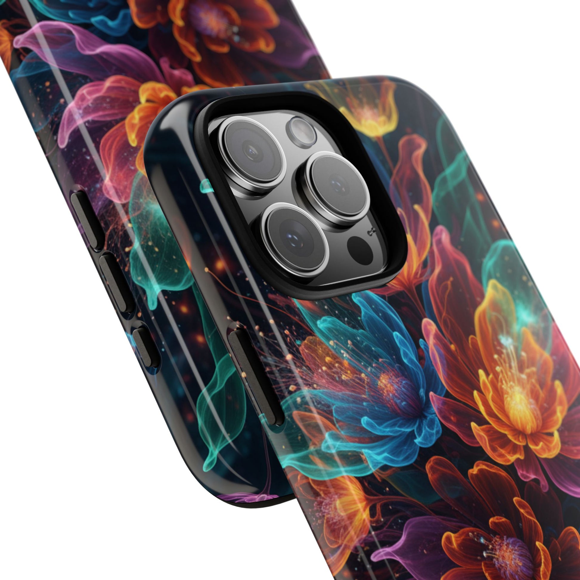 Floral Nebula Tough Phone Case — Colorful Cosmic Flower Protective Cover. iPhone Tough Cases Phone Cases for iPhone 14\15\16\17 – Dual Layer, Matte/Glossy Finish, Wireless Charging Compatible