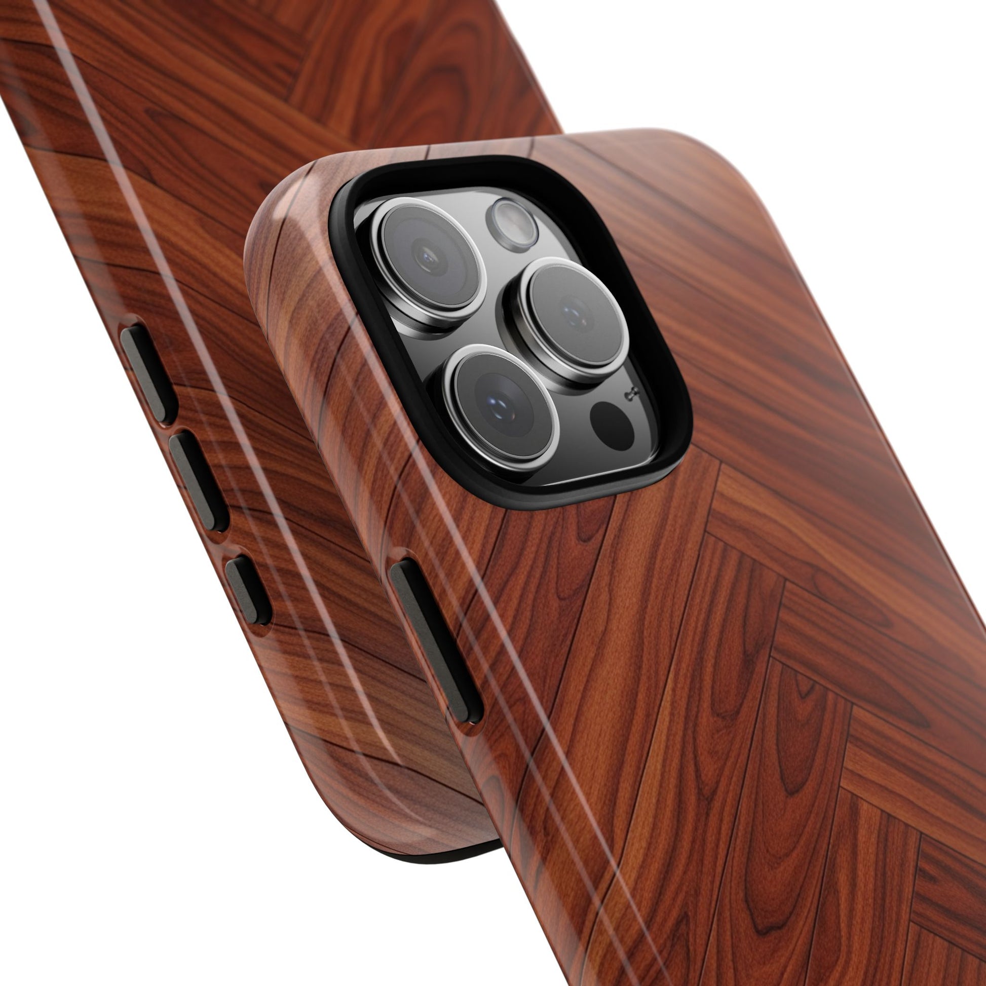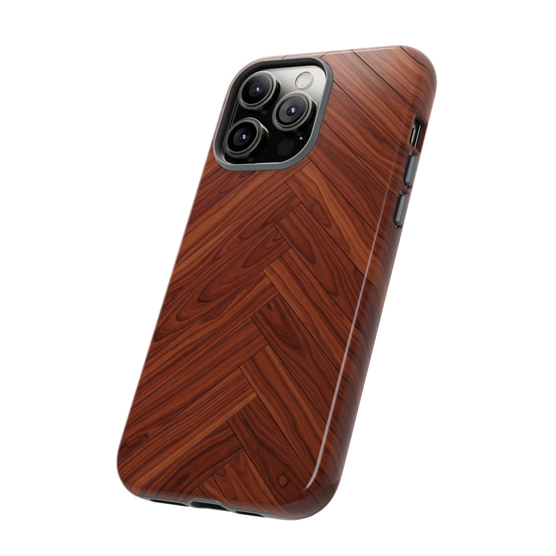 iPhone Tough Cases Phone Cases for iPhone 14\15\16\17 – Dual Layer, Matte/Glossy Finish, Wireless Charging Compatible. Tough Phone Case — Plastic Herringbone Walnut Protective Cover