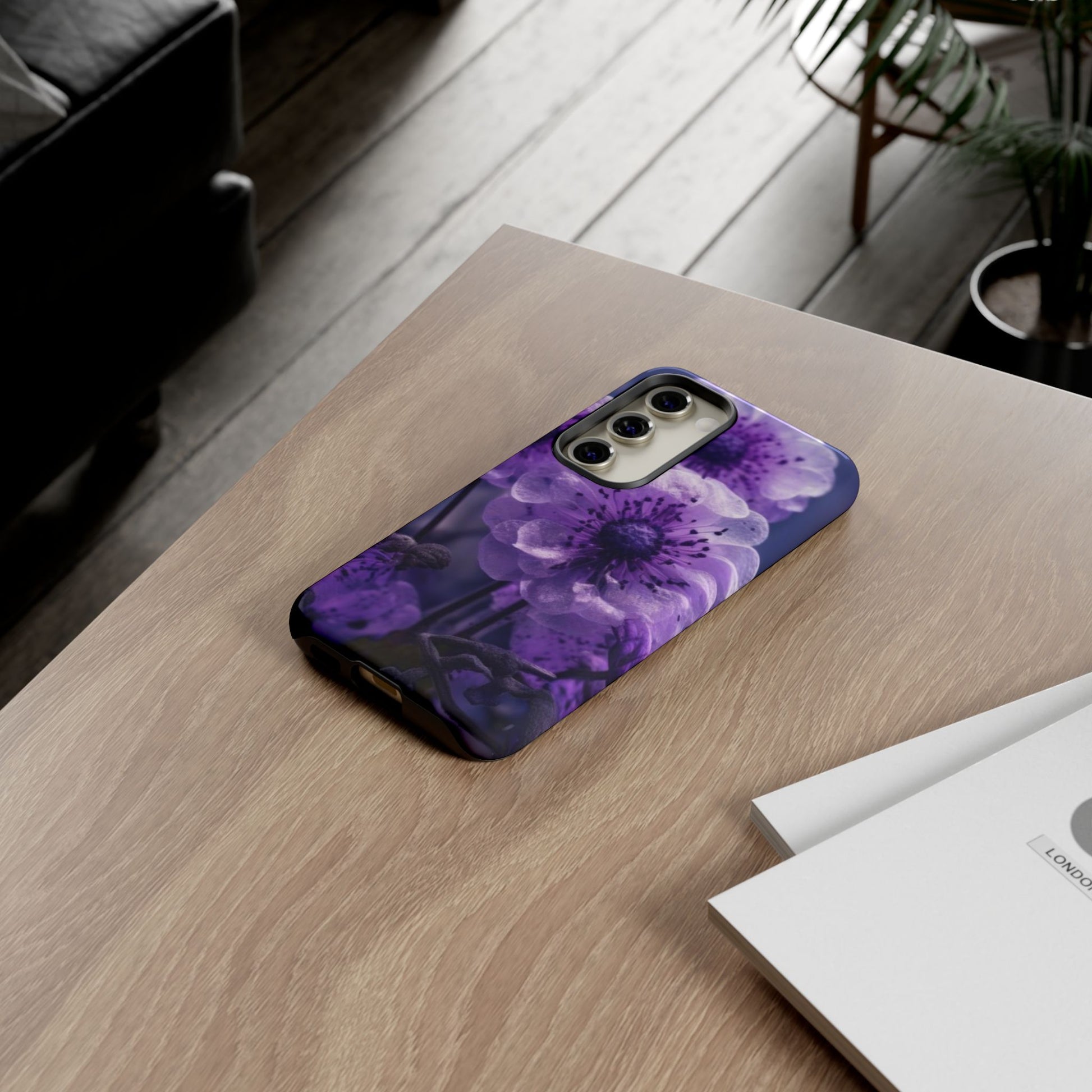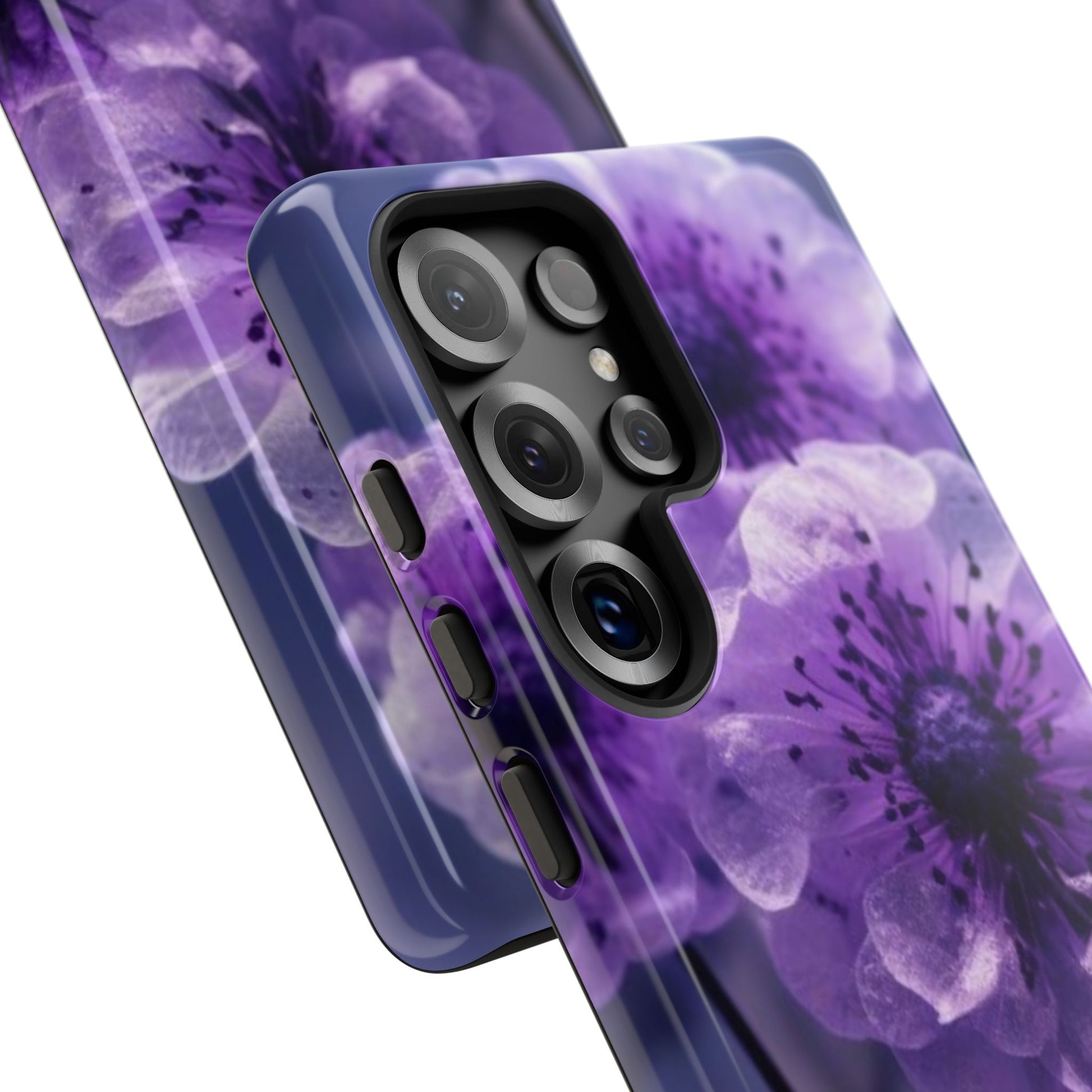 Purple Floral Tough Phone Case for Samsung Galaxy S25/S24/S23, Gifts for Her