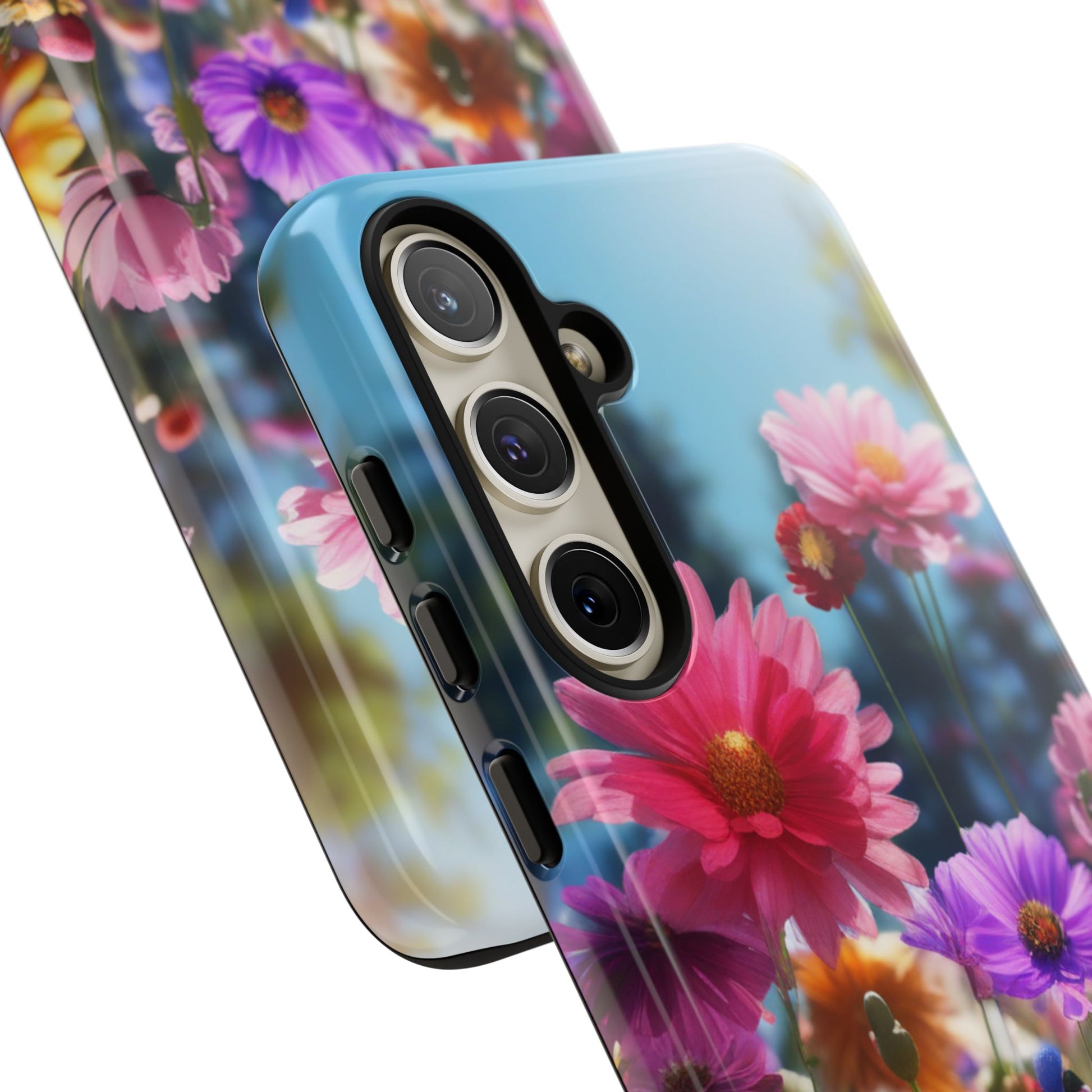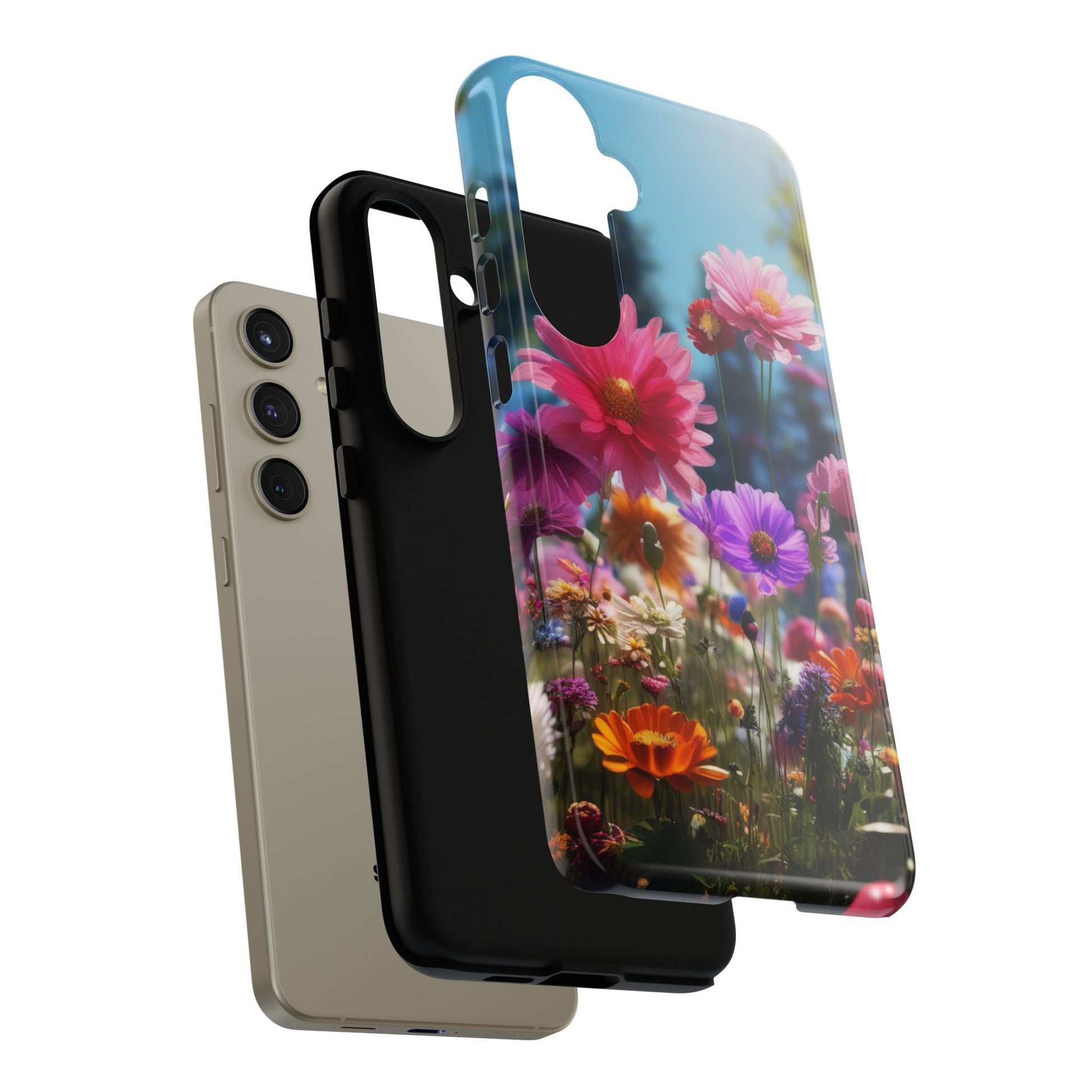 Tough Cases Phone Cases for Samsung Galaxy S25/S24/S23 – Dual Layer, Matte/Glossy Finish, Wireless Charging Compatible, Floral Meadow Tough Phone Case – Colorful Wildflower Protective Cover